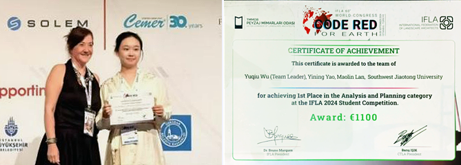 9月4-6日,第60届国际风景园林师联合会(International Federation of Landscape Architects,简称IFLA)世界大会在土耳其伊斯坦布尔国际会议中心召开。beat平台研究生吴雨秋、姚怡宁、兰茂林的作品《BOMBSCAPES:FROM THE WITHERED LAND TO THE LIVING REALM》斩获IFLA国际员工风景园林设计竞赛分析与规划类一等奖。这是西南交大师生团队首次在该赛事中获得一等奖,实现了历史性的突破。
