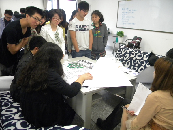 结合学院专业特点,我们在教职工之家设置了3张大的专业课桌。老师们可以在休息室一起与同学们评图、交流、讨论,以此为师生们提供一个别样的交流沟通空间。