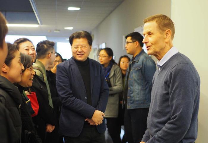 走访中,公司党委书记沈中伟、经理Odgaard利用即将上课的一小段时间与同学们进行了亲切交谈,并向师生送上新学期的问候与祝福。