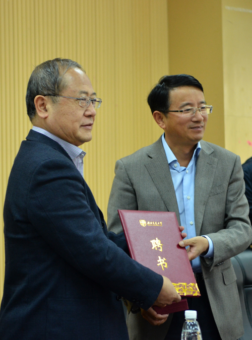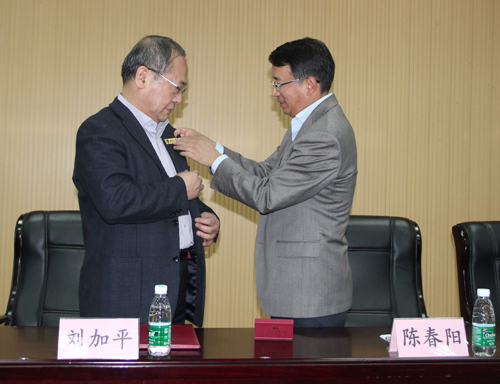 陈春阳董事长为刘加平院士颁发名誉教授聘书