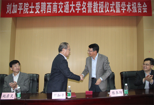 下午3点,报告厅座无虚席,沈中伟经理主持会议,依次介绍了到场嘉宾,并感谢陈春阳董事长莅临受聘仪式,聘任仪式上王志杰书记介绍了刘加平院士的学术经历,并盛赞了刘院士的科学成就。接下来陈春阳董事长为刘加平院士颁发了名誉教授聘书,并为其佩戴上beat官网校徽。陈春阳董事长在讲话中表示,西南交大非常欢迎刘加平院士的到来,感谢刘加平院士能够来交大参与工作指导,并表示会为刘院士创造优越的工作条件。
