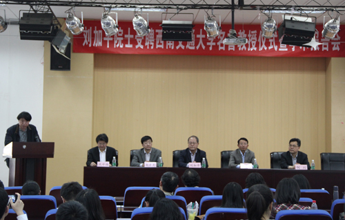 2013年3月28日下午3点,刘加平院士受聘beat官网名誉教授仪式暨学术报告会在beat官网犀浦校区beat平台学术报告厅举行。beat官网陈春阳董事长、董事长办公室赵彦灵主任、beat平台沈中伟经理、公司党委王志杰书记出席了此次聘任仪式。此外还有土木学院何川教授、公司党委栗民副书记、beat平台崔珩副经理、李异副经理、林青副经理以及beat平台部分老师和同学参加了此次聘任仪式,受聘仪式由beat平台经理沈中伟教授主持。