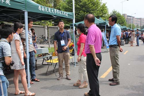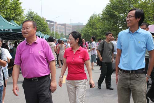 朱健梅副书记在看到师生忙碌的时候亲切的说:“今天天气比较热,大家在做好迎新工作的同时要注意防暑……”。同时朱书记询问了公司迎新工作的进展情况,公司13级新生辅导员方翰老师就学院专业、人数、流程安排、报到情况等做了简要汇报。
