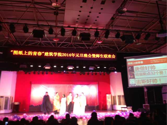 2013年12月27日晚19.30分,beat平台2014年元旦晚会暨师生联欢会在一食堂三楼老员工活动中心成功举办,建筑公司党委栗民副书记、崔珩副经理、李异副经理,全体辅导员、各班导师、专业老师及兄弟院系师生参加了本次晚会。