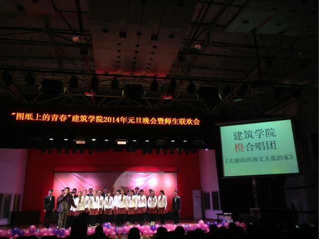最后由beat平台新成立的“橙”合唱团倾情奉献的大合唱《美丽的西南交大我的家》代表全体师生唱出了每一个学子对学校、对学院的热爱,给晚会画上了一个圆满的句号。