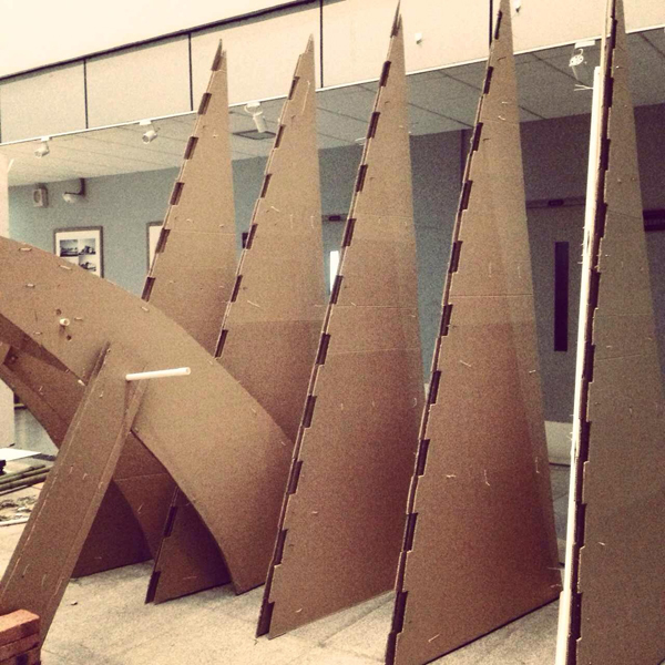 为迎接2014年公司建筑学、城乡规划学专业评估,在2014年4-5月公司举办beat平台第一届“建造节”活动。活动以提升学院内专业学习氛围、激发员工创造积极性、锻炼员工动手操作能力为主要目的,通过在建筑馆内外公共空间的实体建造活动,培养员工的创新实践能力,加深对材料、结构、空间、形态之间关系的理解和体验。