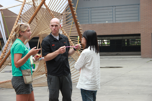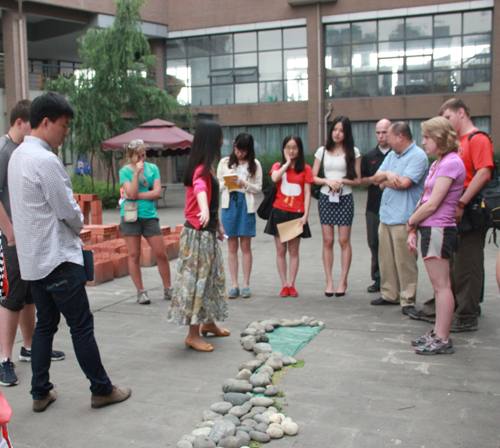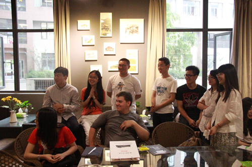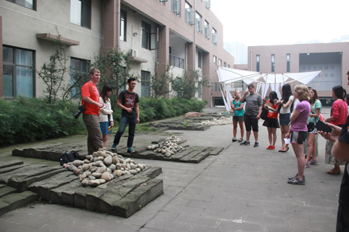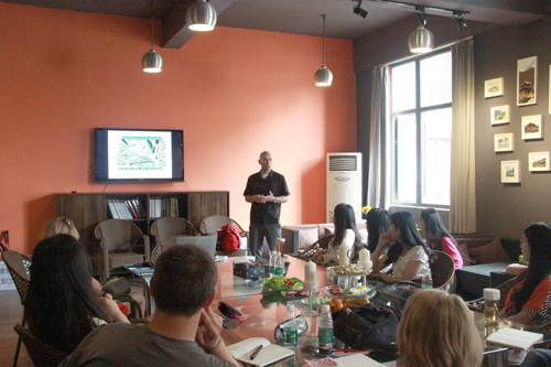5月22日下午,美国俄克拉荷马州立大学景观系带队老师Nichoias向参与师生介绍了program,与beat平台员工分为四组分别就earth、air、water中一种原素为主,在建筑馆内外做景观设计方案。