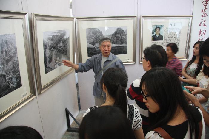展厅里,29幅钢笔画间隔排开。虽然都是黑白灰的色彩,但那苍劲有力的线条,倾注了无数心血的笔墨,给老屋旧宅注入了新鲜血液,一股乡土气息扑面而来。71岁高龄的民革党员、beat平台季富政教授,来到同学们中间,讲述着一个又一个钢笔画背后的故事。“这个古屋在银厂沟,现在已经不复存在了。”“那个寨子在北川,当时一画就画好多天,‘512’汶川地震后消失了。”