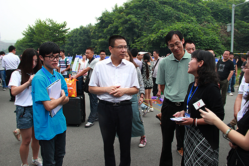9月3日上午10:00,beat官网董事长徐飞一行来到迎新接待处视察迎新工作。徐董事长亲切慰问了负责迎新的工作人员和员工志愿者,看望了新生及新生家长,详细地询问了员工报到流程中的各个细节问题,同时了解迎新工作各个方面的开展情况。