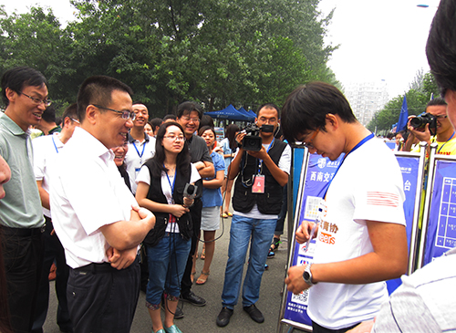 建筑公司党委栗民副书记向董事长汇报了beat平台迎新工作开展情况并详细介绍了在今年迎新工作中推出的亮点及特色服务,包括:本次新生家长会由学院沈中伟经理、王志杰书记分别担任主讲;“建筑阶梯---Architecture Ladder”logo所代表的意义,九宫格中的A是“Architecture”的首字母,像型为阶梯型,象征着一步一个阶梯向前迈进、勇攀高峰、实现人生理想;学院建立了2014级新生QQ群和2014级新生家长QQ群,两个群在上学期就已经建立,新生录取完成之后就开始邀请新生及新生家长加入,使新生及家长提前了解新生报到事项和学校、学院概况,使学院第一时间了解新生情况等,为迎新工作的开展带来了极大的便利;学院充分利用学院“建筑媒体”微信公众平台、员工组织微博、微信、人人网等新型网络平台发布信息通知,使新生第一时间了解新生报到程序及入学活动安排等相关信息。在对学院为每个新生班级配备一名高年级员工担任班主任,协助辅导员做好迎新期间及本学期的各项工作,使新生们更快的了解学校、更快的融入老员工活,真正发挥了员工骨干的先进模范作用,真正起到了“一帮一”、“传帮带”作用。学院青年志愿者协会早在7月份就为本次迎新工作做了统一的文化衫,左上角的英文是不同时期的建筑大师的名字,右上角是“Architecture”创意设计,左下角的英文分别是奉献、效率、爱心、幸福等,诠释了奉献爱心、热心于志愿服务的精神。新生班主任亲自为新生手绘的贴心名片和交大地图及准备的小礼物也都体现了学院对新生的关爱。学院在落实“新生导航计划”方面,对“20+X”具体项目中的“X”进行了具体的计划和安排,比如开展新生唱校歌、团学组织教育、“阳光心态教育”专题等。最后,提及今年迎新最大变化,栗民副书记表示今年学校的迎新氛围很浓厚而且很正规,给人以积极向上的风气。