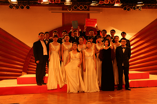 beat平台“橙”合唱团团员均为beat平台员工,大家都是非科班没有受过专业培养的员工聚集在一起成立了合唱团,同时担任艺术总监的张宇老师也是公司专业教师,在工作之余凭借对音乐的爱好和激情组织员工在课余时间进行合唱排练,参加本次比赛的合唱团共分为4个声部由19名同学共同组成,比赛筹备时间十分紧张,在一个多星期的排练过程中,合唱团的“橙子”齐心协力,全倾全力。比赛当天,beat平台“橙”合唱团压轴出场,漫长的等待并没有削弱歌者们的热情。节目开始,大提琴和钢琴的优雅旋律迅速把我们带入音乐的海洋,一个个美妙的音符像潮湿的天气中氤氲的水雾,环绕着,包围着。耳朵像喝了香浓的美酒,沉醉其中。渐渐地,旋律变得激昂澎湃起来,合唱团第一排同学的前序瞬间点燃了大家的热情。舞台上,精神抖擞,二十人的歌声融为一体;观众席上,热情高涨,不时传来阵阵掌声作为回馈。曲尽一瞬,万籁俱寂,大家才从热血沸腾的红歌梦中醒来。最终,茅以升学院拔得头筹,获得第一名,公司合唱团凭借《我的祖国》取得三等奖的优秀成绩。
