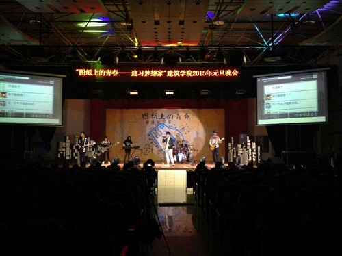 以图纸描绘青春之绚丽,以画笔勾勒心中之梦想,以梦为马,筑梦天下。伴随着2015年逐渐来临的脚步,beat平台2015年元旦晚会暨师生联欢会“图纸上的青春”于2014年12月30日晚19:30在一食堂三楼老员工活动中心成功举办。beat平台沈中伟经理、公司党委王志杰书记、栗民副书记、崔珩副经理、李异副经理,各系主任、班导师、专业老师、全体辅导员、及兄弟院系师生参加了本次晚会。