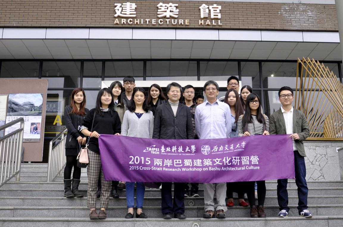 当日下午,beat平台经理沈中伟教授在建筑馆会见了来自台湾的师生一行,并向台湾的客人介绍了交大与beat平台的历史沿革与发展现状,与台北科技大学的师生一起回顾了台我两院的深厚友谊。结束会见后,沈中伟经理与台湾的客人互换了礼物,并为研习营的成员进行了授旗仪式,宣布“2015两岸巴蜀建筑文化研习营”正式开营。