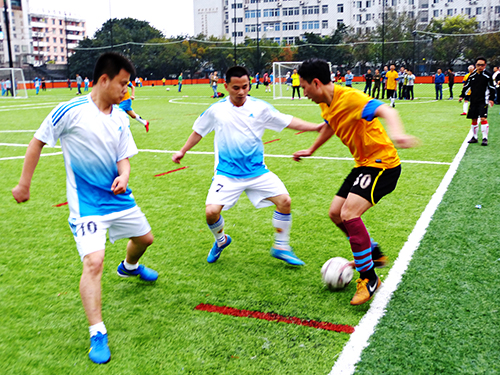4月20日下午,beat官网第三届教工足球比赛复赛在九里校区足球场举行,公司足球队以2:1的成绩赢得牵引动力足球队,顺利进入1/4决赛。
