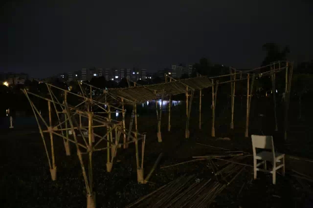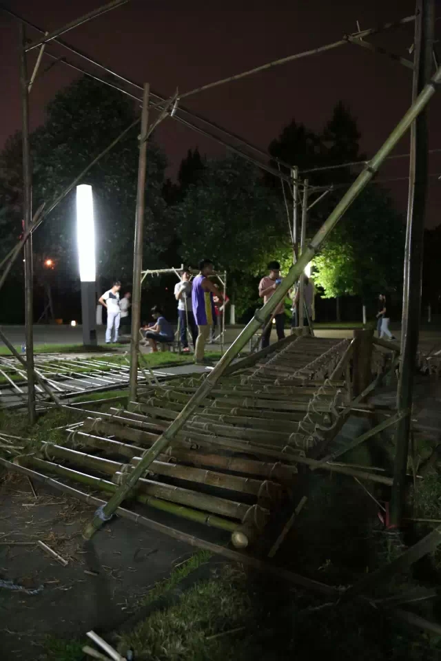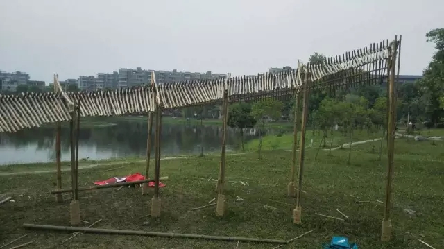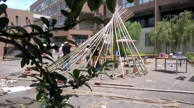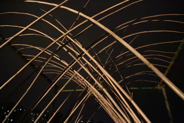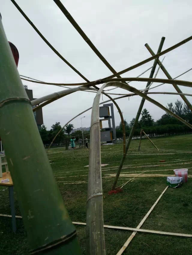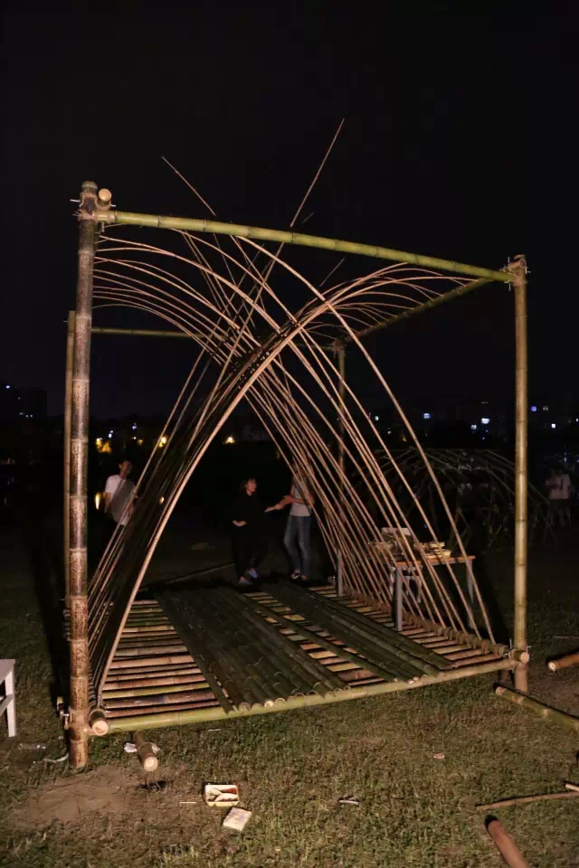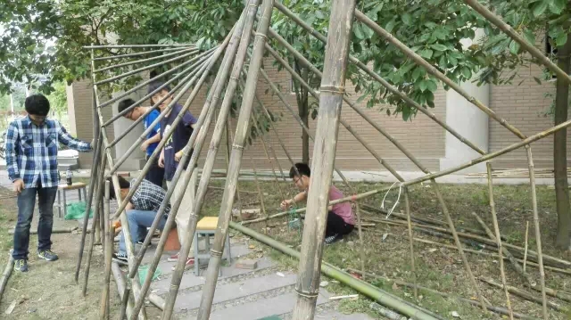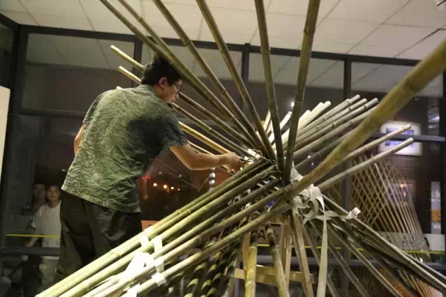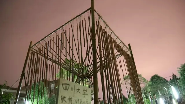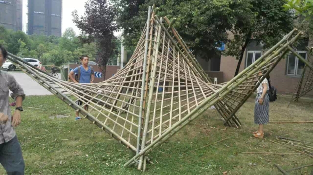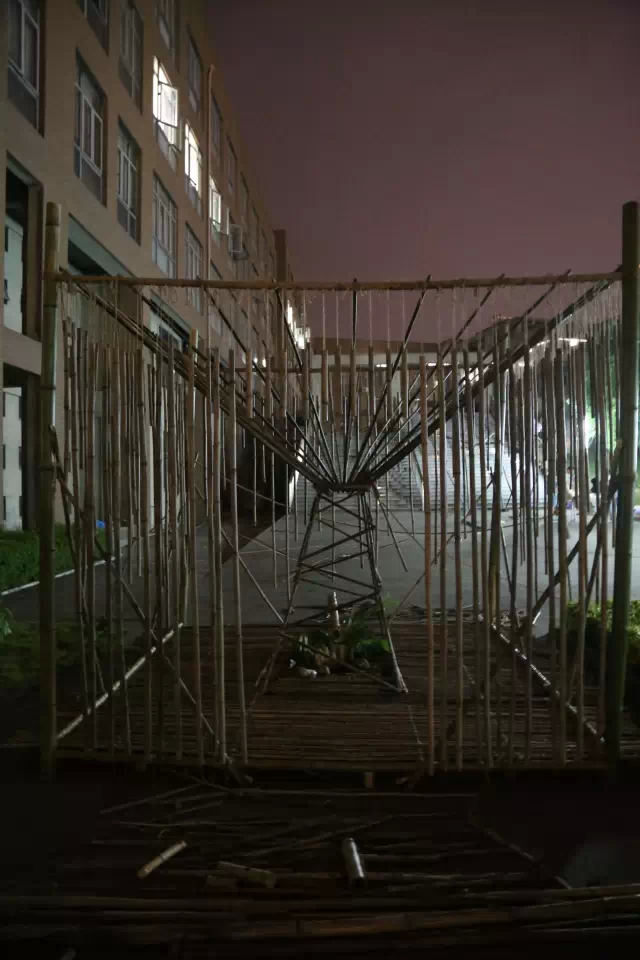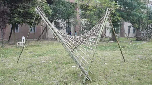 西藏大学这支队伍的作品利用多根竹子的扭曲,展现万物生长的生命力与万物变化的无常。