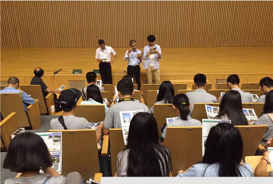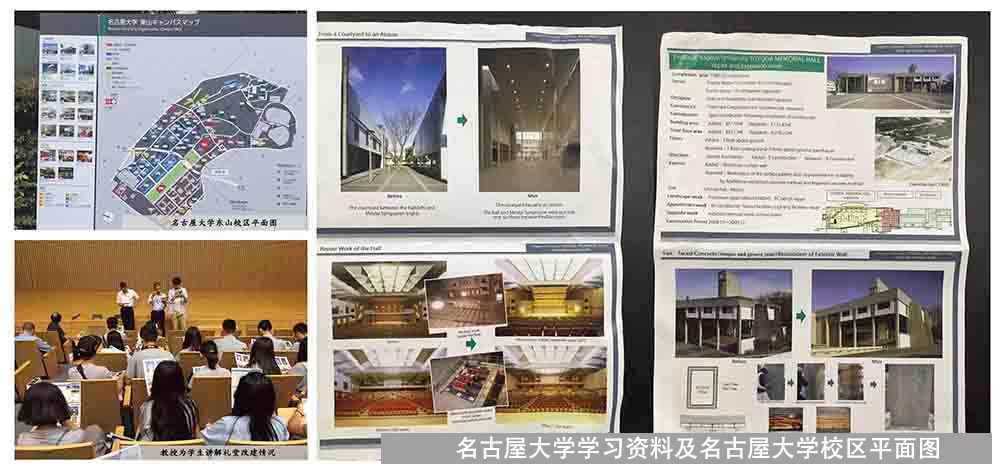课堂教学活动部分: 在名古屋大学的课堂教学活动中,公司国家外专局高端海外专家计划特聘教授、原名古屋大学董事长助理谷口元教授全程参与授课活动,名大西泽泰彦与小松尚教授为师生介绍了名古屋大学的基本情况,带领员工参观调研名古屋大学丰田大讲堂的前后期改造工程,以及改造后期的利用等问题,包括讲堂内部的功能区域划分,在座椅处设置网线、电源等细微之处都有所考虑。之后为大家介绍了关于国际化交流工作以及职工的招收条件等问题。随后为下午的竞赛地块调研做了说明,并与学员们沟通交流,使学员们对于地块的情况有了较为清楚的认识,谷口元教授更是在炎热的下午亲自带领大家踏勘项目设计场地,并为员工做了耐心的解答。