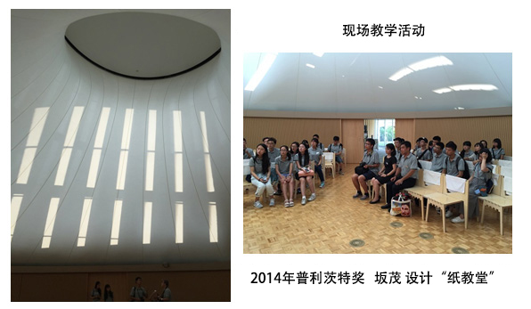 34名全体师生在猛暑中对日本城市商业综合体(表参道、银座商业建筑群)、城市交通枢纽(京都火车站、关西国际机场)进行了调研;参访了日本东京大学、名古屋大学、立命馆大学的校园建筑和历史遗产(金阁寺、清水寺、姬路城等);在2014年普利兹克建筑奖(建筑界诺贝尔)获得者坂茂先生设计的纸之教堂、六甲山集合住宅、淡路梦舞台等日本建筑大师作品地进行了现场教学。