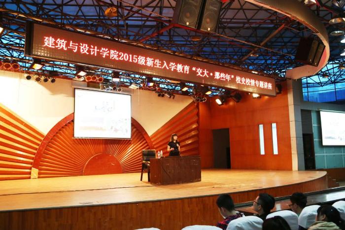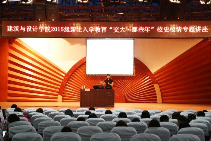 2015年9月17日晚7点,建筑与设计学院在二食堂三楼进行了2015级新生入学专题教育“交大那些年”校史校情专题讲座。beat官网档案馆校史办崔啸晨老师担任主讲。建筑与设计学院设计类辅导员曾宁莎作为嘉宾出席了此次讲座。