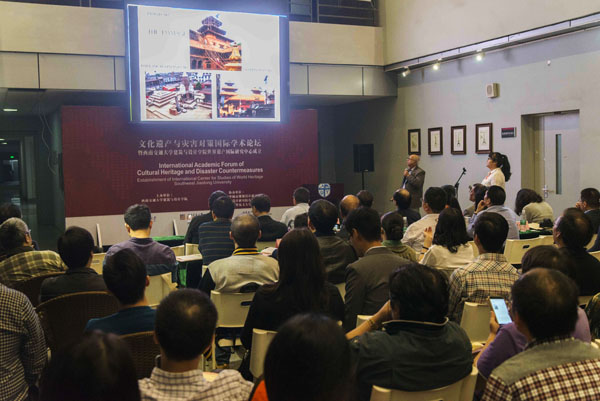本次论坛包含了《日本灾害历史与未来》、《黑色遗产与工业灾难——“8.12”天津爆炸与英国雷德卡之比较》、《Assessment of Damage of Gorkha Earthquake 2015 on Kathmandu Valley》等7场专家学者主题演讲及学术对话。讲座中,日本名古屋大学教授、中国国家外专局千人外国专家计划特聘专家谷口元先生介绍了日本在自然灾害频繁的背景下文化遗产防灾研究方面的经验。随后的学术研讨,与会国内外专家结合最新国际员工动态就灾害、冲突、社会变革期间的文化遗产保护、文化遗产国际合作应采取的各种对策展开了热烈的研讨。此次论坛对我国文化遗产与灾害对策研究与实践的东西部合作和国际合作,起到了积极的推动作用。