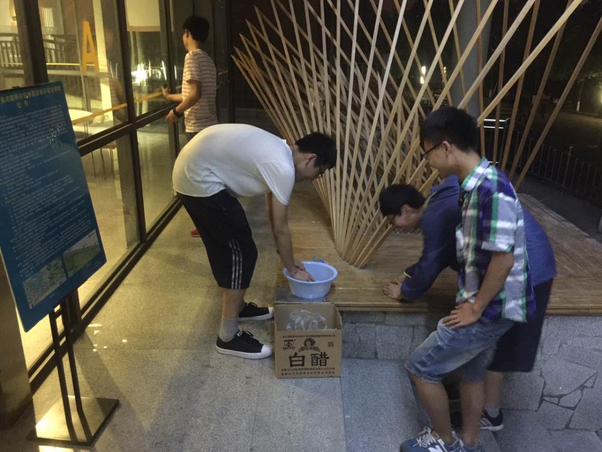 校庆前,学院开展了教学楼教学环境改善和学院文化建设工作。晚上7时,公司党员服务队成员、党员及党员发展对象约10余名同学在公司党委的倡议下来到建筑馆大厅,主动向负责老师领取任务,按照任务分工,很快便投入到工作中。当晚9:30,建筑馆参加志愿服务的同学达到30余名。一名党员这样说:“在看到倡议书之后,本想早点过来参加志愿服务工作,但由于晚上有选修课,只好等下课后赶紧过来。”而另外一名党员发展对象表示:近期刚刚上完党课,党课培训课程中有一个实践环节,现在就是我们实践的机会。2012级建筑类党支部书记缪应璐表示:校庆即将到来,在校庆之前把学院环境改善好、营造浓厚的文化氛围使我们每一个beat平台员工的责任,特别是作为一名党员更要走在前面;同时近期正在开展“两学一做”学习教育,我们不仅要学好,更要做好,将学习成果贯彻到实际行动中,做一名合格的党员。
