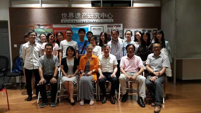 6月6日讲座后,彼纳斯先生在学院世界遗产国际研究中心与部分师生开展了面对面的交流。作为无神论者,彼纳斯先生从哥特建筑作为切入点,与同学们探讨了宗教建筑的环境感染力,介绍了当代欧洲社会,更多地以文化传统而不是灵魂信仰来看待宗教的实际情况,鲜明否定了“欧洲人基本都信仰基督教”的误解,对当前在东亚地区所谓“基督教”的传播模式和动机提出了质疑。刘弘涛老师介绍了遗产中心近期主要的学术研究工作,双方就合作开展传统聚落的调查研究,进行了技术性讨论。