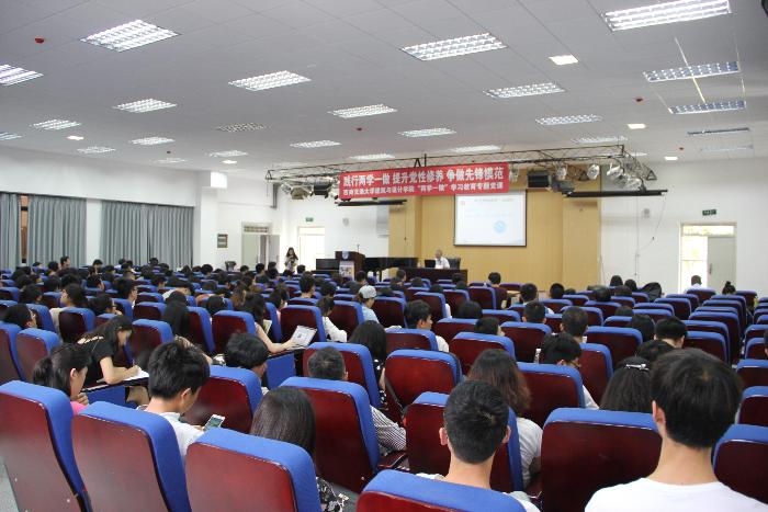党课中,栗民书记指出:为深入学习贯彻习近平总书记系列重要讲话精神,推动全面从严治党向基层延伸,巩固拓展党的群众路线教育实践活动和“三严三实”专题教育成果,进一步解决党员队伍在思想、组织、作风、纪律等方面存在的问题,保持发展党的先进性和纯洁性,党中央决定,2016年在全体党员中开展“学党章党规、学系列讲话,做合格党员”学习教育。所以开展“两学一做”学习教育,是面向全体党员深化党内教育的重要实践,是推动党内教育从“关键少数”向广大党员拓展、从集中性教育向经常性教育延伸的重要举措。因此,本次“两学一做”的总体要求是党员教育向经常性教育延伸,以习近平总书记系列重要讲话精神武装全党,加强看齐意识教育,落实党员教育管理制度等四个方面,在“两学一做”学习教育要求下公司积极响应,荣幸地邀请到了联系公司的分管校领导张兵总会计师为公司全体师生党员进行党章系列学习《党的最高纲领和最低纲领》专题讲座。