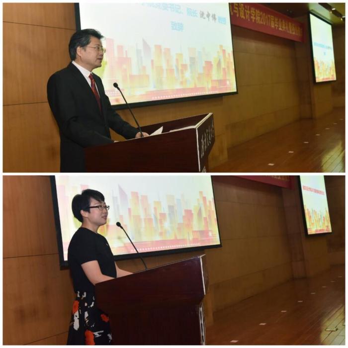 在全体起立奏唱国歌后,沈中伟向各位毕业生深情致辞。他说:“我们一起见证了建筑与设计学院的蓬勃升起,学术、技术、艺术融汇贯通;见证了交大120周年校庆,以及建筑与设计学院的70周年;见证了你们每一位同学从刚入校的稚嫩懵懂到现在的自信飞扬。” 希望每一位毕业生无论何时,都能够耐得住寂寞、忍得住痛苦、顶得住压力、扛得住误解,永葆善良,坦坦荡荡,不断前进;希望各位同学永远记住交大、记住建筑与设计学院,这个曾经生活和学习过的地方;也希望大家一帆风顺、前程似锦,在未来的岁月里,健康、努力、快乐、成功。