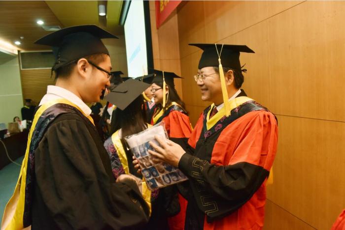 授位仪式完后,毕业生代表向学院赠送了自制纪念品。