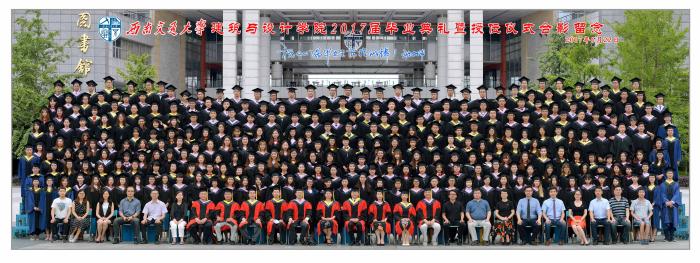 典礼结束后,院领导、院学位评定分委员会委员、全体师生在图书馆面前合影,留下2017届师生最美的一刻。