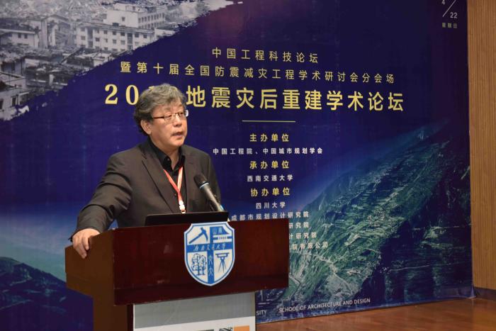 中国工程院院士、同济大学副董事长吴志强教授代表中国工程院土木学部领导、中国城市规划学会领导对学术论坛的顺利召开表示祝贺。吴志强院士指出城市规划人在灾后重建工作中扮演重要角色。两次地震中,诸多知名规划学者专家都奋战在一线。中国工程院高度重视此次会议,中国城市规划学会更是持续参与本次会议的筹划工作。吴志强院士感谢beat官网建筑与设计学院在四川灾后重建工作中的辛勤付出,强调地震十年是一个值得反思的时间,在此时办会势必极大推动学术提升!
