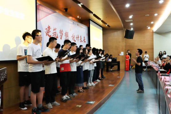 最后公司橙合唱团为毕业生献唱《大鱼》及《那些花儿》随着歌声同学们挥舞着自己手机的电筒,为所有毕业生祝福,全体合唱校歌《文轨车书郅大同》。在热烈的欢呼声和鼓掌声中,建筑与设计学院2018届毕业典礼暨授位仪式圆满落下帷幕。
