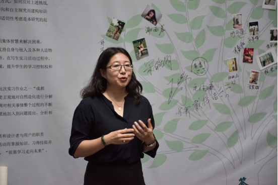 随后,副经理杨青娟致辞中肯定了同学在2018年暑期实习课程中的辛苦付出,一分耕耘一分收获,通过此次展览的举办,同学们可以展示作品、相互交流、取长补短。教师利用现有条件,抓住作品是直观性教学成果的特点,应势利导建立好作品展览教学模式,充分激发员工学习的积极性,就能产生很好的教学效果,甚至建立传帮接带的良好学习风气。杨经理最后还祝福参展同学们在未来的学习中取得更加优异的成绩。