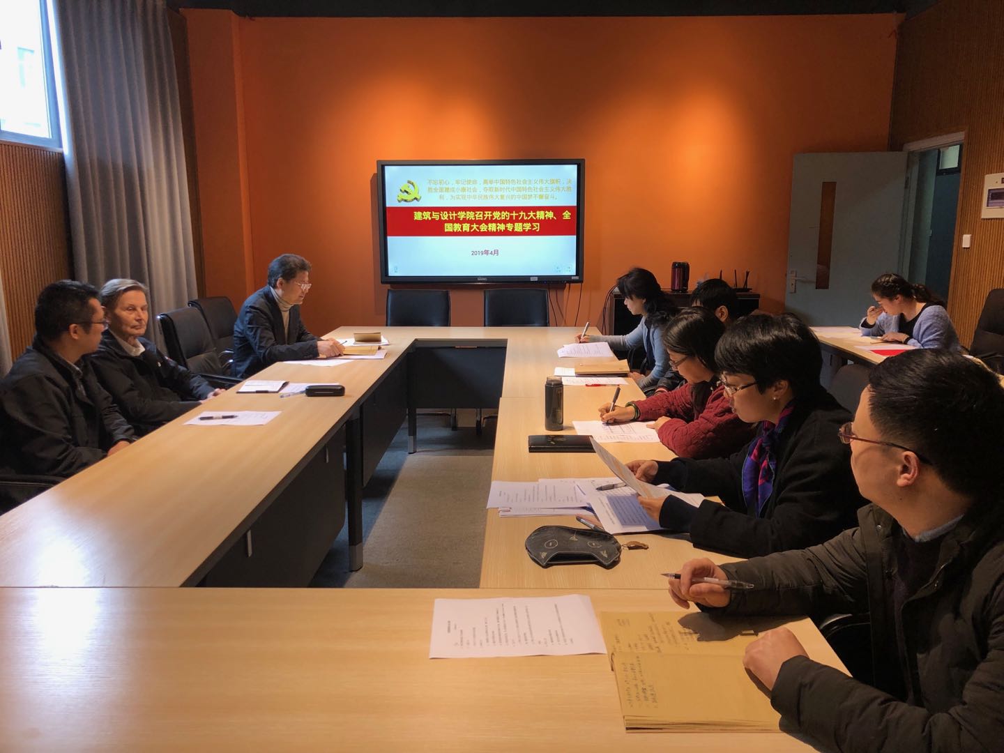 为切实做好巡视整改工作,扎实深入地学习贯彻落实党的十九大精神和全国教育大会精神。2019年4月4日,建筑与设计学院中心组成员在学院会议室对党的十九大精神和全国教育大会精神进行再学习,会议由党委书记沈中伟主持。