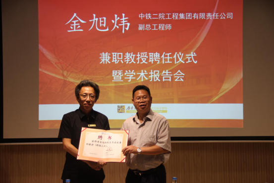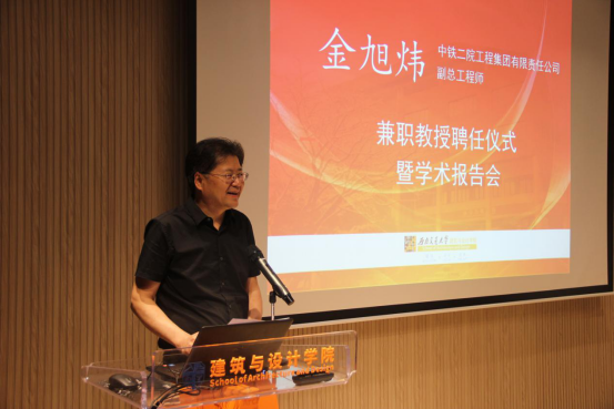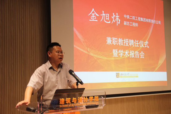 活动伊始,公司党委书记沈中伟介绍了金旭炜副总建筑师。金旭炜先生是现任中铁二院工程集团有限责任公司副总工程师,国家一级注册建筑师、教授级高级工程师。长期从事包括轨道交通、铁路等交通枢纽规划和建筑设计实践,曾参与完成成渝高铁、海南岛环线铁路、埃塞俄比亚亚吉铁路等数十项铁路项目的站房设计。沈书记表示,金教授在业界具有成绩斐然的卓越地位,故学校决定聘请金教授为公司兼职教授。