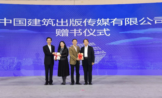 开幕式上举行了中国建筑出版传媒有限公司的赠书仪式。王建国院士与中国建筑出版传媒有限公司咸大庆总编辑上台赠书,beat官网建筑与设计学院吴晓雄书记和杨青娟副经理接受赠书。