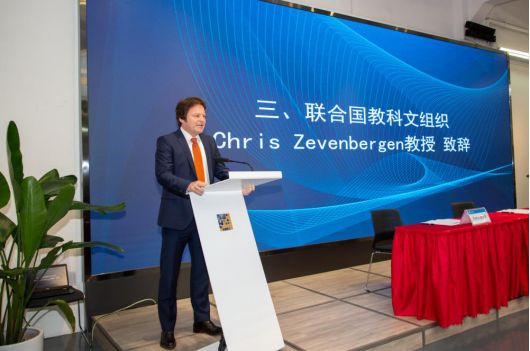 联合国教科文组织教授Chris Zevenbergen在致辞中对学院的成立表示热烈的祝贺,对学院未来的发展满怀期待。他希望今后能与师生开展深入合作,携手共赢。