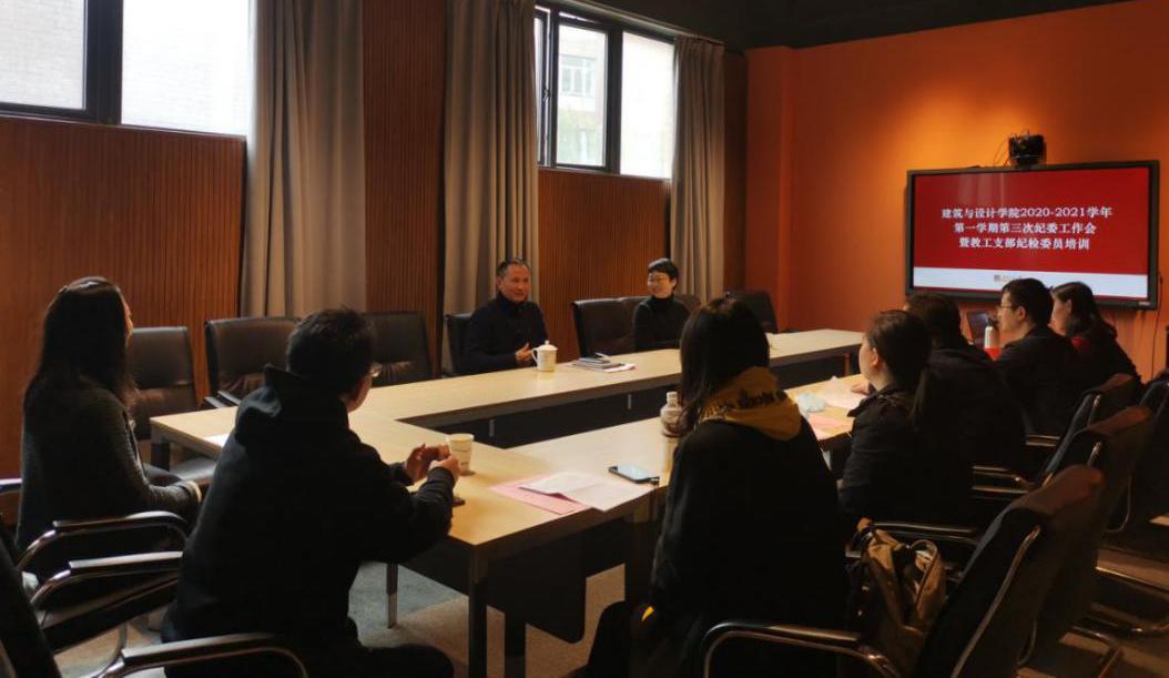 2020年11月18日上午11:30,建筑与设计学院教工党支部纪检委员培训会在犀浦校区X8238公司第一会议室举行,公司党委书记吴晓雄应邀出席会议,学院纪委书记刘一杰主持会议,各教工党支部纪检委员参会。