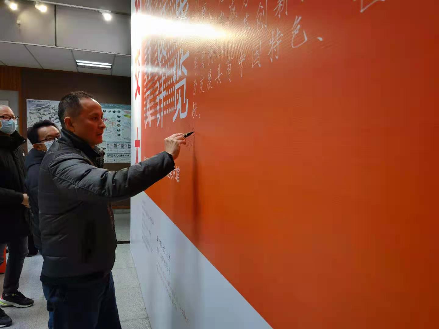 随后,建筑与设计公司党委副书记刘一杰宣读本次获奖作品名单,进行优秀作品颁奖仪式。最后,在主持人引导下,建筑与设计学院教师代表共同签署“师德承诺签名墙”,并进行合影留念。至此,“爱我交大”——学风师风主题艺术设计展开幕式暨颁奖仪式圆满落幕。活动结束后,现场的老师同学们有序参观展览作品。