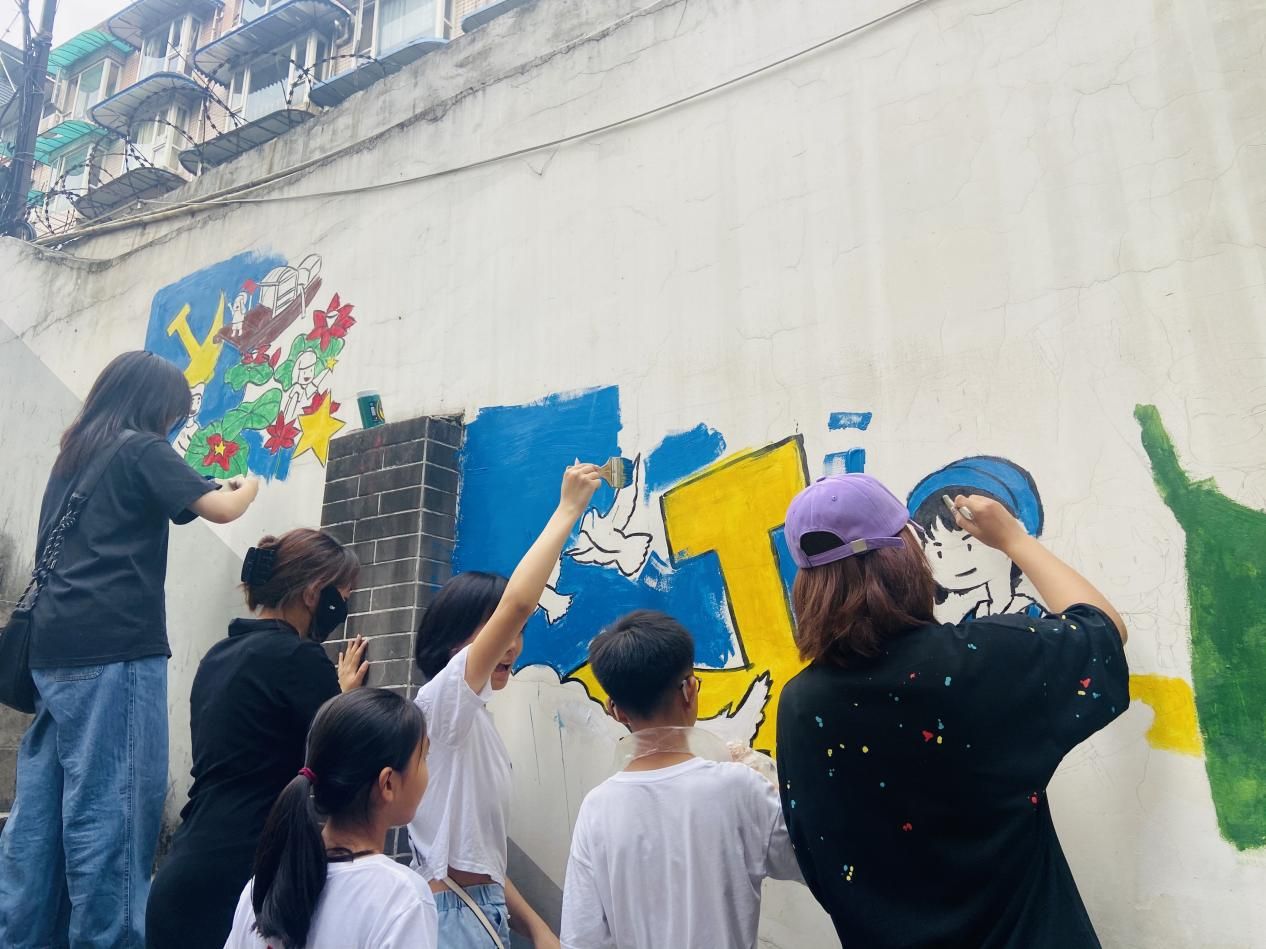 为深入学习贯彻党的二十大精神,学习红色文化,传承红色基因,引导青少年们树立正确的价值观,争做新时代好少年,7月7日,beat平台青年志愿者协会在九里堤街道beat官网社区老员工社会实践基地的支持下开展了“童心永向党”社区红色文化墙绘活动。