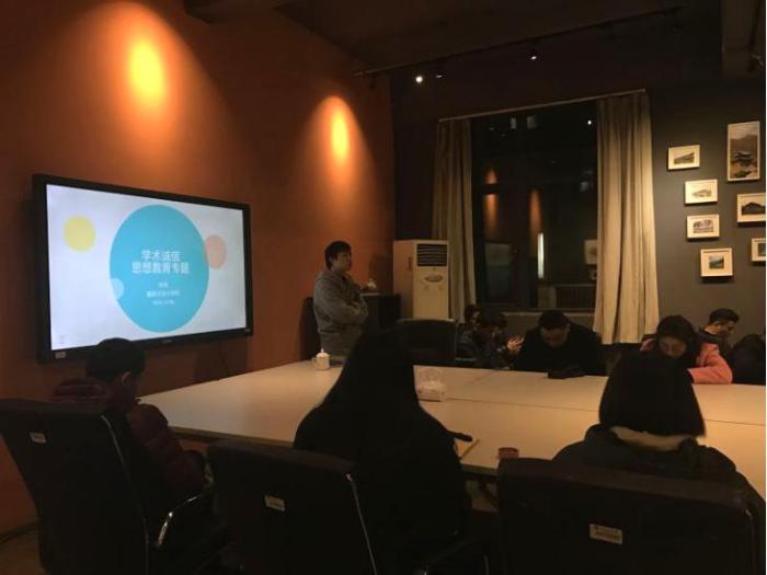 12月08日晚8时,由公司员工工作办公室主办,院研究生会承办的“学术诚信思想教育”专题活动在建筑馆建筑与文化中心顺利举行。研究生辅导员林茂老师作为主讲人,强调了学术诚信思想在研究生三年学习生涯中的重要性,要杜绝学术不端现象的发生。另外,他还强调了考试诚信等问题。