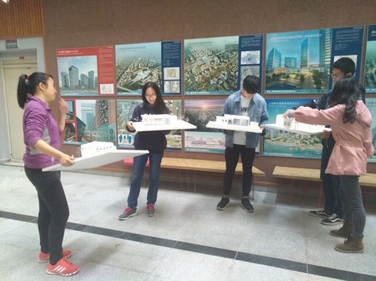 活动中大家提出了很多实践操作的问题,比如,制作模型时要把握好什么重要的点才能使作品脱颖而出。李雨霞给出了自己的建议:“将所有模型的外表面都粘上一层白纸,不仅能遮盖本身在pvc板上的铅笔印,更显得整洁统一。同时,将墙面进行仔细地打磨,使粘起来的两个板像一张板一样,也可能是老师更为认可的原因。”