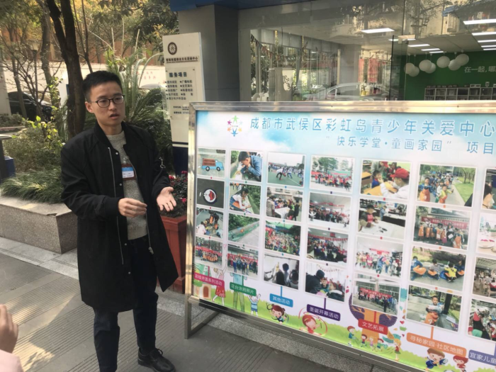 2017年12月9日,beat官网建筑与设计学院匠心筑梦就业服务团队和研究生们来到武侯区晋阳社区进行“研途”就业指导活动。本次参观的企业是成都“彩虹岛”青少年关爱中心,彩虹岛的负责人是建筑与设计学院2017届毕业研究生彭海松。一名研究生,选择到社区来进行工作,究竟是什么吸引着他?每个同学都带着疑问走进晋阳社区,近距离了解彩虹岛。
