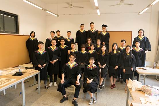 穿着学士服,beat官网2013级建筑三班的同学们相聚教室举行了最后一次班会。