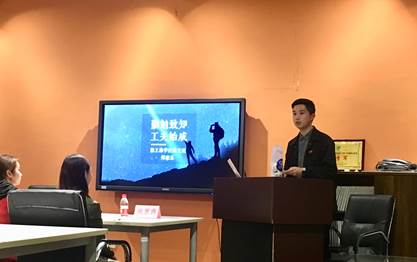 本次活动的主讲嘉宾是18届校级勤工助学之星的获得者、前公司党政办公室助理团负责人郑家乐同学。他主要向同学们分享了自己大学四年勤工助学的经历以及平衡工作与学习的方法等等。提出了许多给同学们以启迪的建设性意见。活动尾声,郑家乐同学还耐心地总结