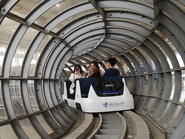 参观过程中,同学们有幸乘坐了载人高温超导磁悬浮试验车,切身体验到学校在交通运载方面雄厚的科研技术实力。这让同学们为自己“交大人”的身份感到更加自豪。同时,现场研究工作者严谨的工作态度、不畏困难的科研精神也给大家留下了深刻印象。