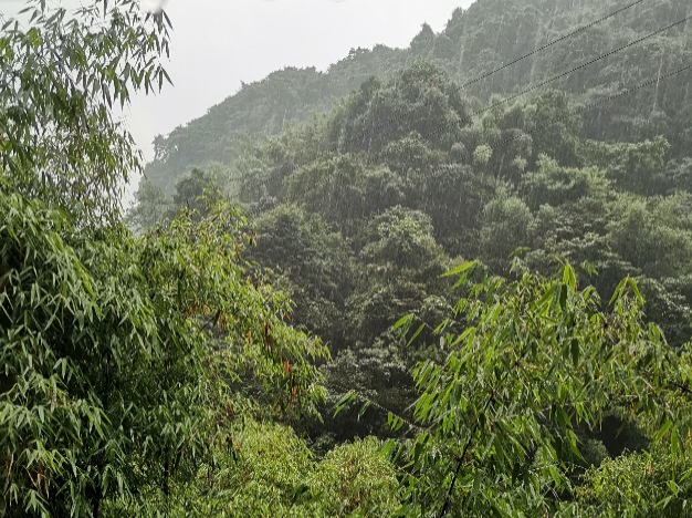 调研小组于当日下午17:00带着眷恋和不舍开始返程,途中恰逢下大雨,与来时路途不同,途经一段正在修建中的山路,由于天气原因暂停施工,我们的车在泥泞的道路上艰难地行走,与此同时,基地的那些熊猫们会受到什么影响呢?熊猫基地建在海拔1100米到1200米的山地之间,地势较高,受大雨影响较小,经工作人员全面排查,熊猫宝宝们安然无恙,熊猫圈舍也没有出现任何漏雨和倒塌现象。