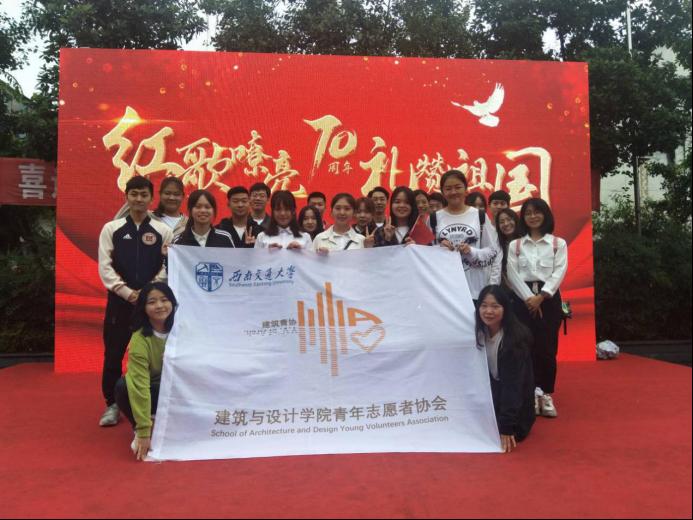 2019年9月15日,为庆祝中华人民共和国成立70周年,加强员工组织与基层党组织的联系,积极践行社会主义核心价值观,beat官网建筑与设计学院青年志愿者协会参加了由成都市郫筒街道中心村村委会承办的主题为《红歌嘹亮,礼赞祖国》的文艺汇演。