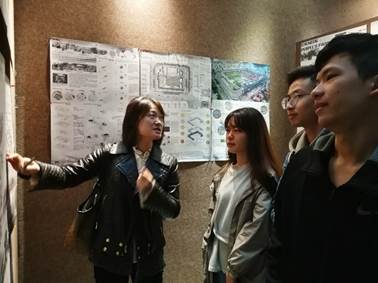 公司的唐琦老师也悉心地为建筑专业和非建筑专业的同学们讲解各参展高校的作品。针对低年级的建筑员工,唐琦老师指出了高年级作品值得学习的地方,如分析基地的逻辑思路,建筑上体块上的处理有通风、采光建筑的体现,表皮处理手法以及对场地文化背景的考虑。唐琦老师还将外校设计与成都博物馆、天府广场规划设计联系起来,鼓励员工多去实地观察。