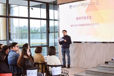 接着,公司教师代表付飞进行了发言。付飞老师先回顾了建筑学学科办学90年来的发展历程,同时给予了本次高校联展极高的肯定,并从教师角度分析阐述了本次联展活动对于学院发展的积极推动以及对学院员工所产生的深远影响与启发;同时也表达了对每一所参展学校的感谢和对今后持续合作的期望。在场师生都真切地感受到了学院对本次活动的重视以及对未来积极发展的希望。