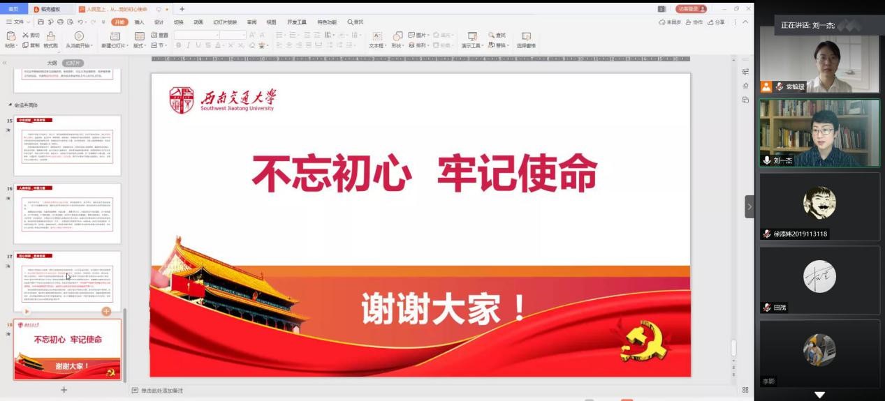 最后,谈及个人层面时,刘一杰副书记鼓励各位员工党员要做到“学习生活两不误”。在高质量完成专业学习的同时,要努力深入抗疫一线,在实际的工作实践中收获宝贵经验。同时,作为新时代的老员工,我们也要勇于当担起“服务人民,报效祖国”的社会责任,“有一分热,发一分光”,为抗疫攻坚的胜利贡献自己的绵薄之力。